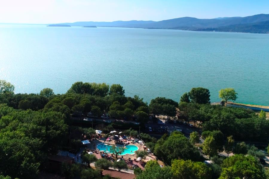 Direkte ned til Trasimenersøen, i perfekt harmoni med den tætte bevoksning, der omgiver stedet. Camping feriecentret snor sig frem mellem træerne inde i en egetræsskov, hvor der er ryddet pladser i terrasser ned til søen, og en olivenlund, hvor der står murstenshuse, bungalows, hytter og husvogne, i en position med udsigt. Feriecentret har swimmingpool, restaurant, bar, supermarked, TV stue, vaskeri, legeplads til børnene, bordtennis, spillehal, cykeludlejning. Mulighed for ridning, tennis og golf. Badestrand. I Juli og august måned organiseres underholdning, babyclub, temafester, udflugter til øerne, udflugter på cykel, med bus til Rom - Assisi.
