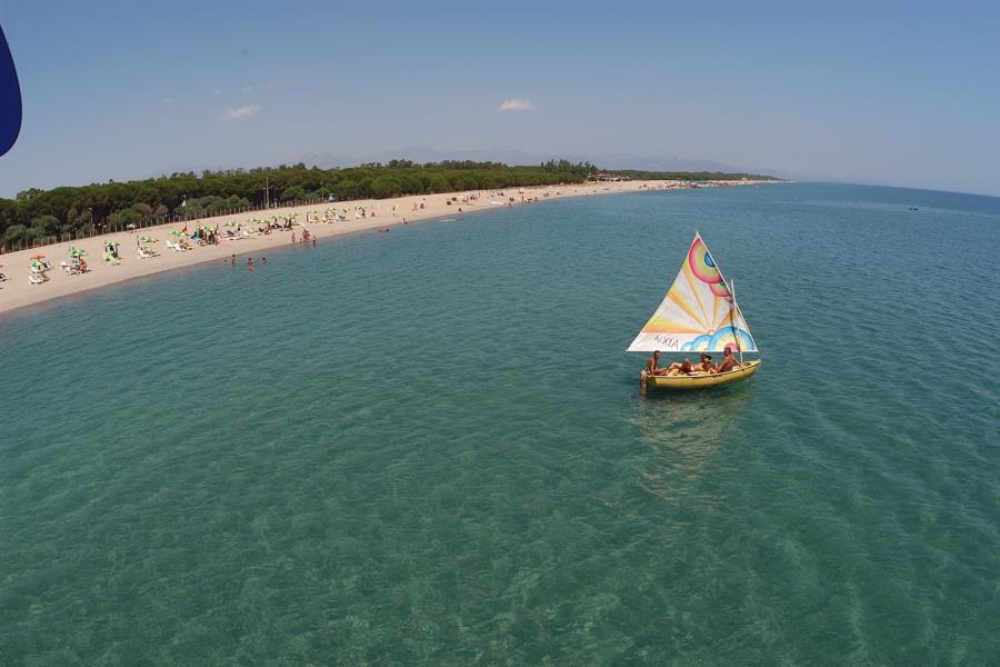 CAMPING THURIUM VILLAGGIO is situated in one of the most picturesque areas along the Ionian coast in Calabria, between Sibari and Corigliano Calabro. In an area offering a wealth of attractions in terms of its landscape and culture, we can ensure you that you will enjoy a unique holiday. The natural beauty of the pinewood comes together with the crystal-clear sea to create a stunning setting, while your comfort is guaranteed by the modern and efficient facilities. The wood on the shores of the sea...in the heart of the Magna Graecia We offer brick bungalows and villas two-roomed with 2 and 4 beds, three-roomed with 5 beds and Mobilhome two-roomed with 4 beds, equipped with every comfort, to ensure that guests will not miss the conveniences of home, and large pitches, direktly on the sea, guaranteeing full shade in the midst of the pinewood.There is a convenient shopping centre available for guests, with bar, restaurant, pizzeria, take-away service, ice-cream parlour, shop-bazaar, baker, butcher, greengrocer, newsagent, tobacconist, hairdresser, surgery, TV room, cinema, video games room, children's playground, laundry and ironing area, camper-service, exchange service, safe-keeping for valuables, private well-equipped beach, car/bicycle service, garaging, night warden service, credit card and cash point, postal service, excursions. In the Camping-Village it is possible to take part in all kinds of sporting activities: tennis, football, bowls, table-tennis, basketball, volleyball, beach volleyball, water sports...while a qualified team of staff will keep both adults and children occupied, for an entertaining and unforgettable holiday.