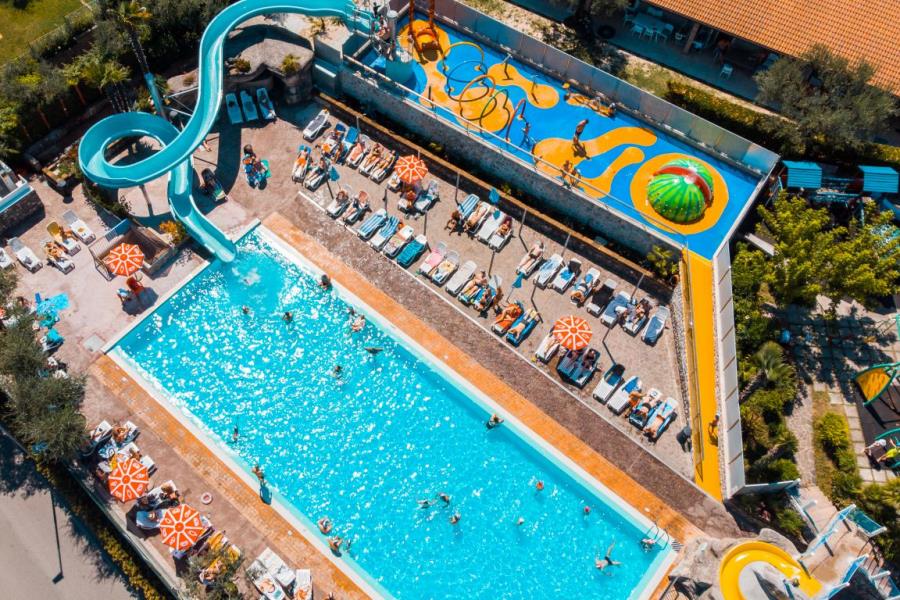 Green and relaxing landscapes with spectacular panoramas, everywhere blue nuances of sky and water: Lake Garda offers plenty of variety with something new every day... Camping Eden Village is situated in one of the most picturesque parts of the Gulf of Salò. This is an area rich with tradition and history, and famous for its cuisine. Lying by the lake, the fragrance and colours of the flowers in bloom are in perfect harmony with the tranquil and relaxing atmosphere of the Village. Camping Eden can offer at the same time a relaxing but also dynamic holiday. The open spaces and gardens, private beach, 3 swimming pools, waterslides, restaurant-pizzeria-bar, snack bar, minimarket, together with a choice of accommodations and services like chalets, mobile homes, pitches, showers, washbasins, laundry provide an ideal location for all tastes. The tennis court, football field, beachvolley ground, children's playgrounds, video games are available for guests entertainment. Camping Eden assures to the customers a service of info and reservation for cultural manifestations and sports (golf, sailing, windsurf and riding).