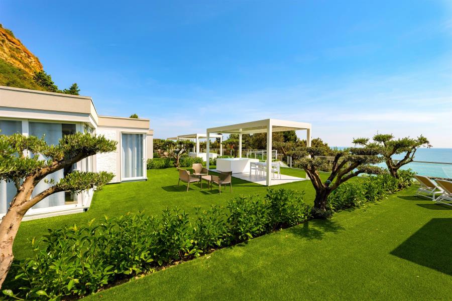 De “Riva Verde” is een van de grootste en meest gerenommeerde toeristische viersterren complexen van de midden Adriatische kust. Volledig verborgen in het groen, opgenomen in een natuurlijke baai aan de kust, grenzend aan de groene streek van de regio Marken, strekt het complex zich met terrassen uit over een gebied van 170.000 mÇ en biedt hoeken panorama van zeldzame schoonheid en direct contact met de natuur. In de schaduw van eeuwenoude eiken, pijnbomen, acacia’s en andere bomen, is de structuur van alle comfort voorzien en vormt de ideale bestemming voor gezinnen die een camping zoeken voor tenten, caravans en campers maar die vooral op zoek zijn naar een vakantiedorp met meer dan 160 wooneenheden met een ruim keuze uit comfort, grootte en prijs. Het waterpark is zeker de moeite waard: op een oppervlak van 4000 mÇ bevinden zich 5 zwembaden die op harmonieuze wijze in de omgeving opgenomen zijn, waaronder de lagune met kastelen en waterspelen voor kinderen, het Olympische zwembad waar de waterglijbanen "Cobra" (dubbel lang traject van 100 meter) en "Krokodil" (ondergronds traject) uitkomen, het zwembad met strand, het meertje met bootjes en het olifantje, het hydromassagebad, de relaxzone en het solarium, de sportschool en talrijke andere recreatievormen. Een staf van animators zal u van s’morgens tot s’avonds betrekken en begeleiden bij een rijk activiteitenprogramma, toernooien, sporten, spelen, voorstellingen, live muziek en dansavonden. De miniclub zal alle kinderen vanaf 3 jaar onvergetelijke, vrolijke en creatieve dagen bezorgen. Het verblijf kan bovendien verrijkt worden door excursies naar de kleine plaatsjes in het achterland waar cultuur en geschiedenis zich mengen met de erkende culinaire tradities waarvan s’zomers vele historische evenementen en gastronomische dorpsfeesten getuige zullen zijn.
